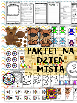 Gotowe zadania dla dzieci w wieku przedszkolnym i wczesnoszkolnym: Girlanda z napisem "DZIEŃ MISIA", Plakat informujący o Dniu Misia, Etykiety, Karta pracy "Portret misia", Karta pracy "Jaki jest twój miś"- prosty opis, Karta pracy "Jaki jest twój miś"- Porównywania, Karta pracy "Napisz ciekawe opowiadanie o misiu", Karty kolorowe misie - pary, Karta Dorysuj drugą połowę obrazka, Karty z misiami w 4 kolorach do porządkowania, nauki kolorów i tworzenia zbiorów, Karta Mierzenie misia, "Misiowe" liczby. Karty przydziału liczb 0-10, Puzzle 1-10- zabawa w dobieranie par puzzli, Puzzle 7 i 9 elementowe, Miś do złożenia z elementów (wersja mała A4 i duża), kolorowanki.